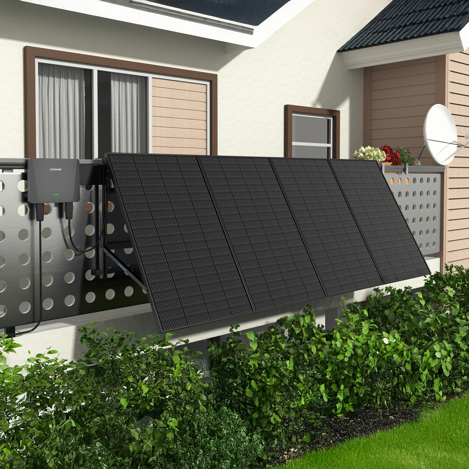 ・Schnelle Montage: Mit mitgeliefertem Gestell für Balkon, Flachdach oder Garten.
