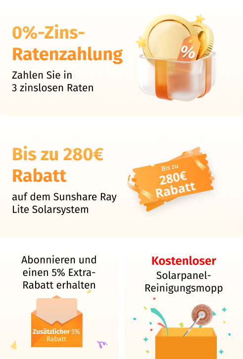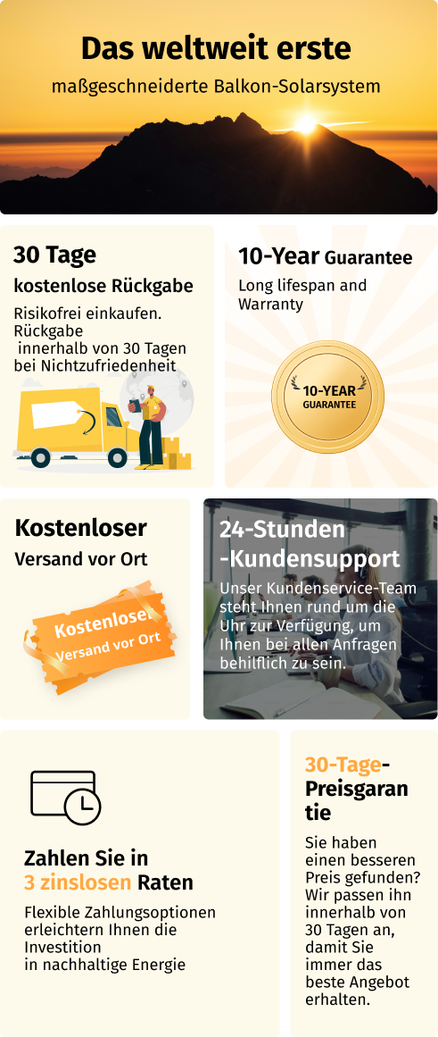 2 x 200W Solarmodul, 4 x Balkon Halterun, 1 x Mikro-Wechselrichter, 1 x 5M/10M Kable.