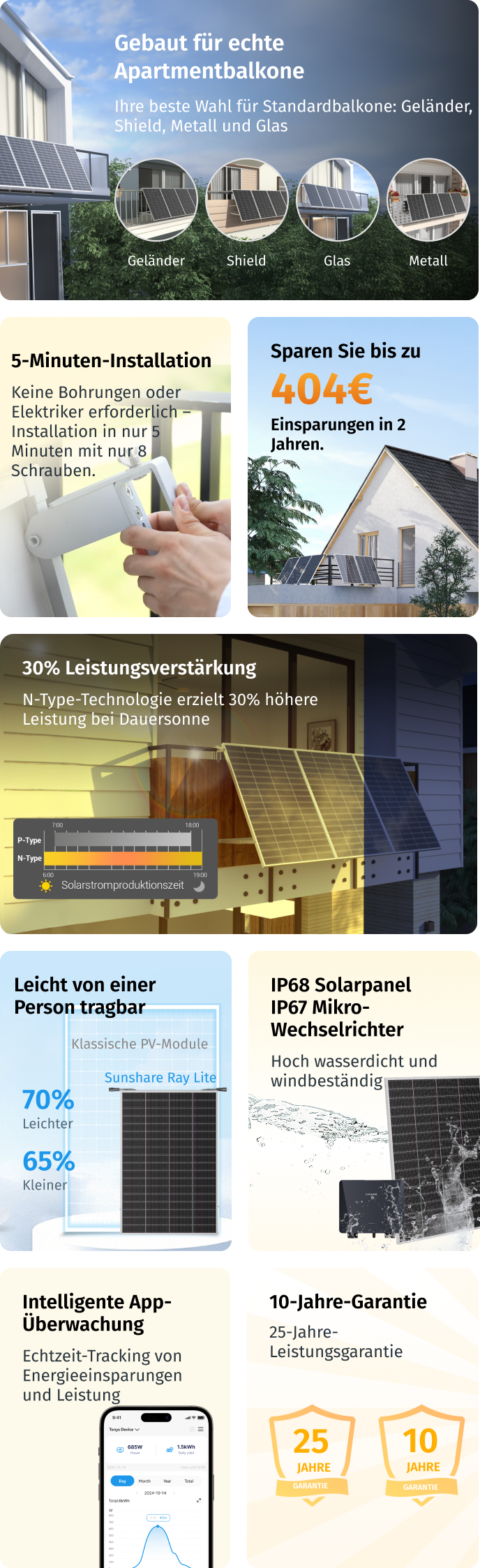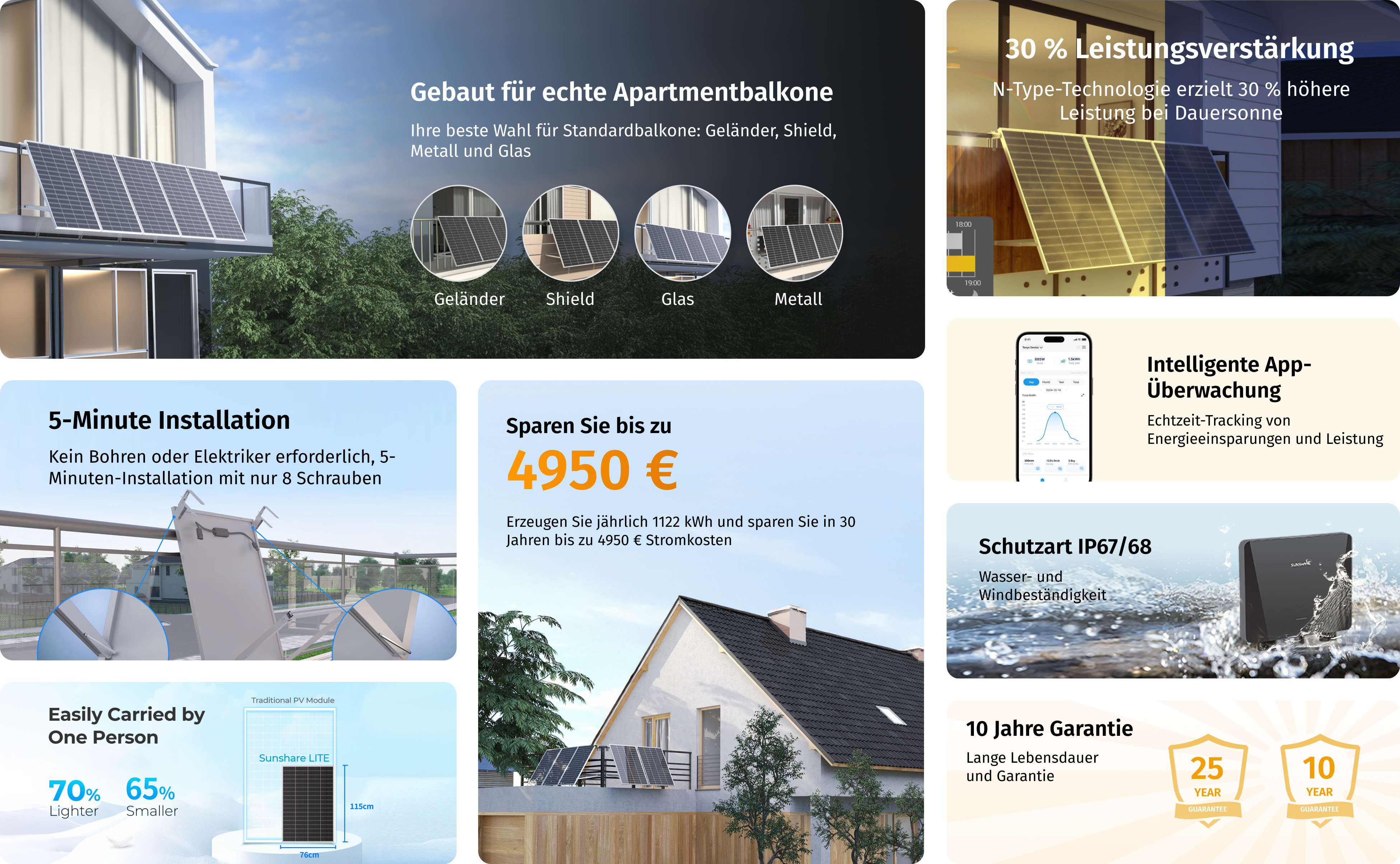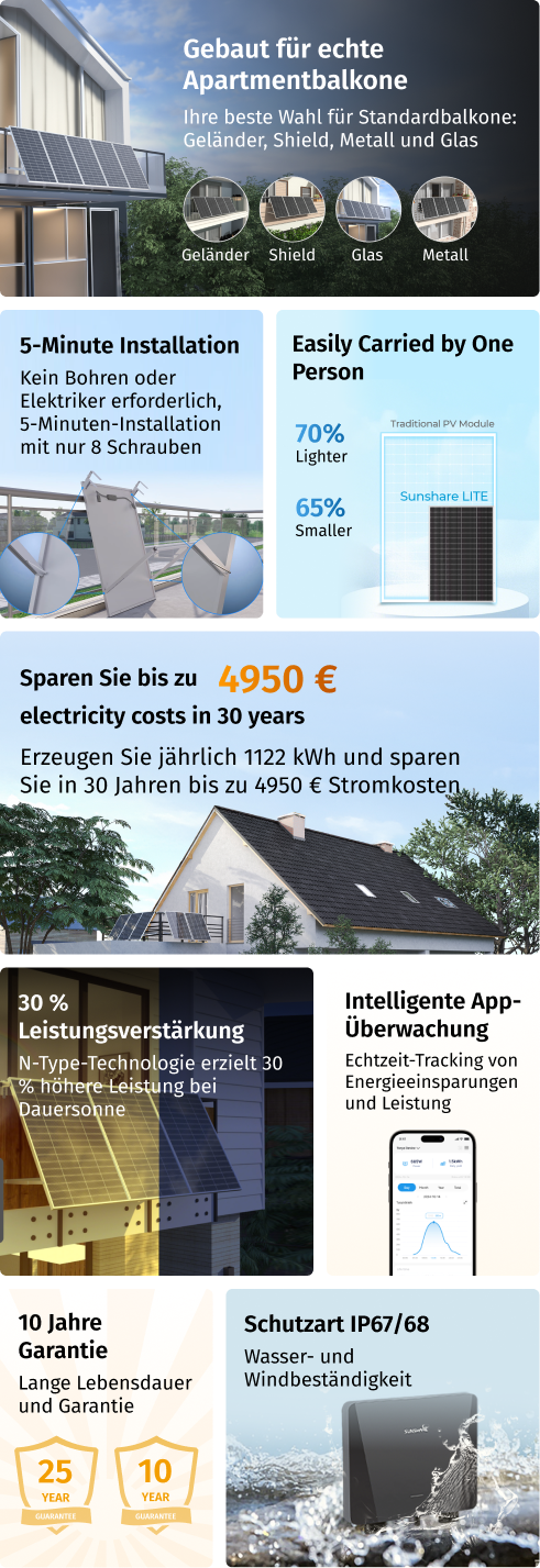 Geländer Balkon Balkonkraftwerk 200W-1200W