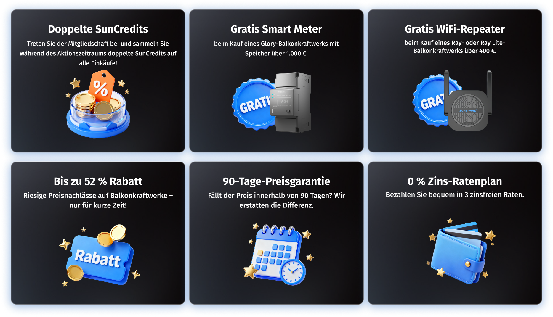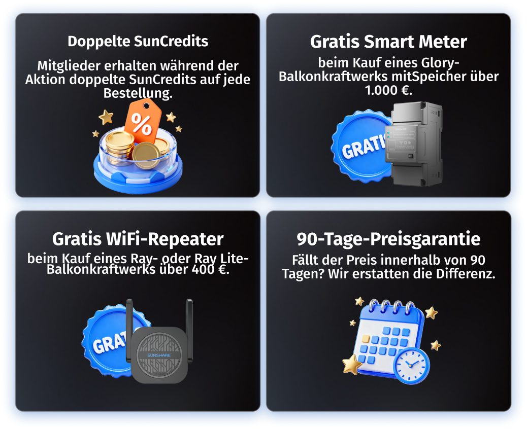 Lade deine Freunde ein, die Sunshare-Produkte auszuprobieren – sie erhalten 10 % Rabatt auf ihre erste Bestellung. Je mehr Freunde du einlädst, desto höher sind deine Gewinnchancen!