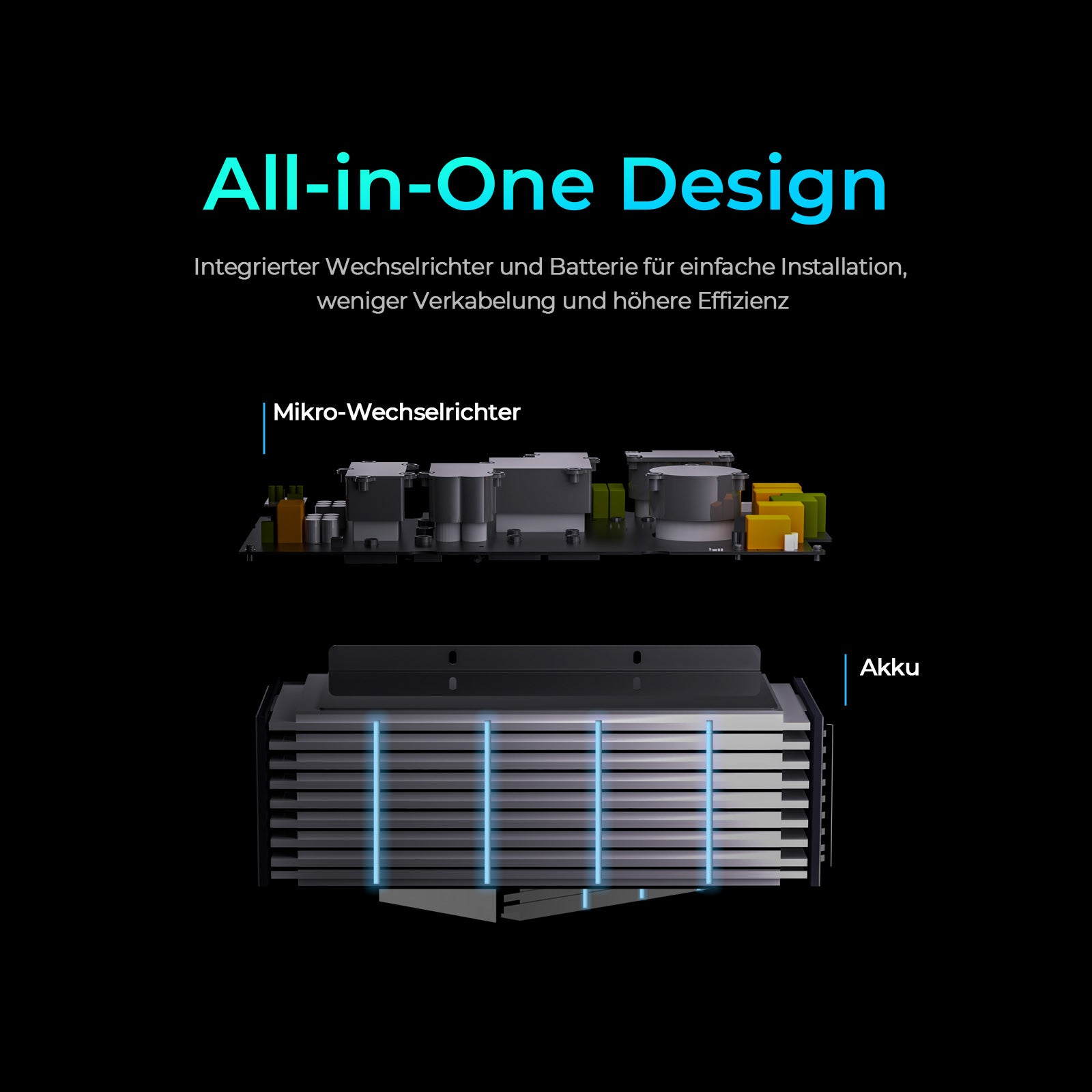 • Dual 1200W MPPTs – 2.400 W Solareingang, 50 % weniger Kabel und doppelt so schnelle Installation.