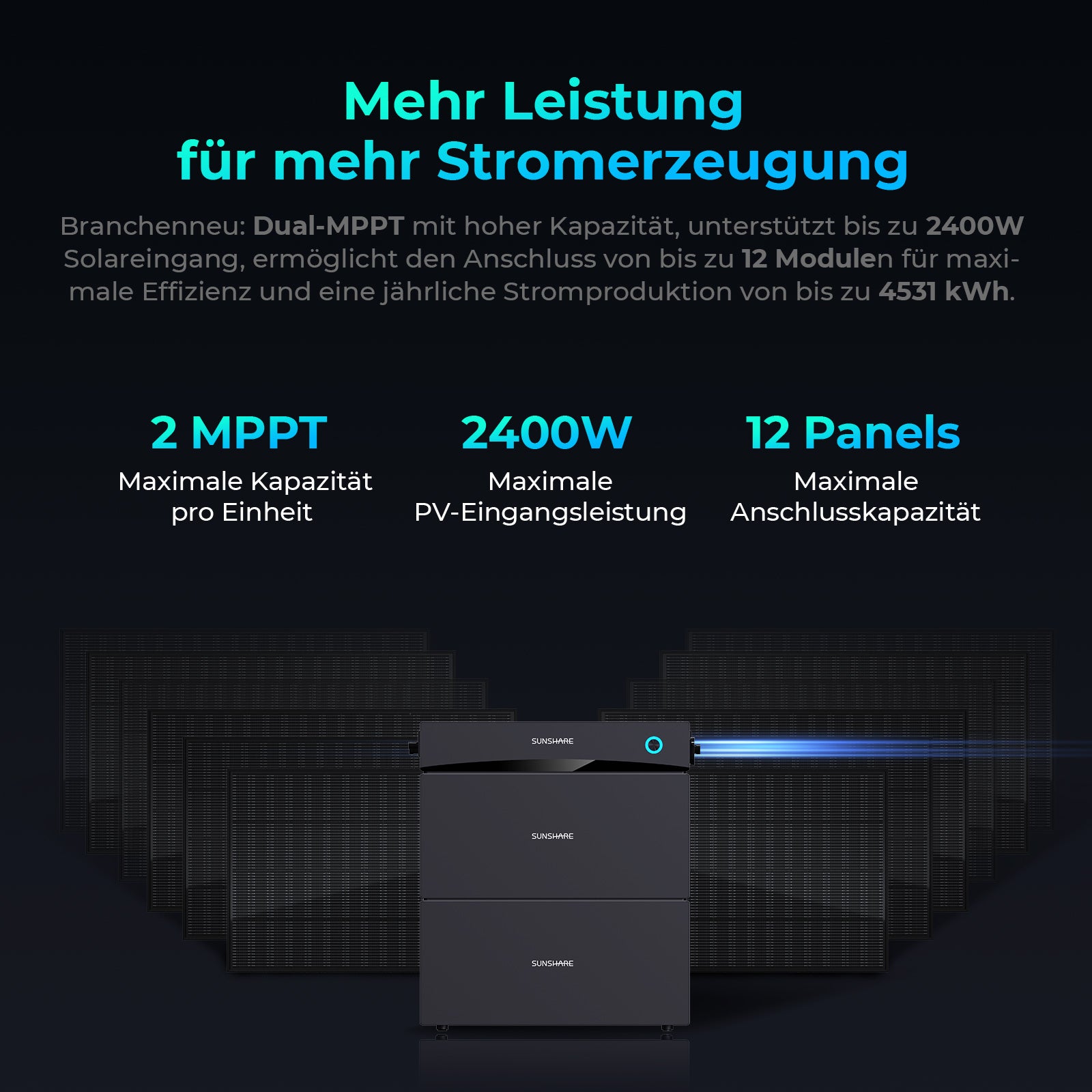 Sunshare Glory 3056Wh Energiespeicher + 1600W Solarpanel + Smart Meter + Smart Plug