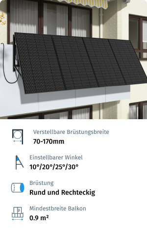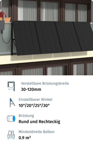- Neigungswinkel von 10 ° bis 30 ° verstellbar, um eine optimale Ausrichtung und maximale Solarerträge zu gewährleisten.