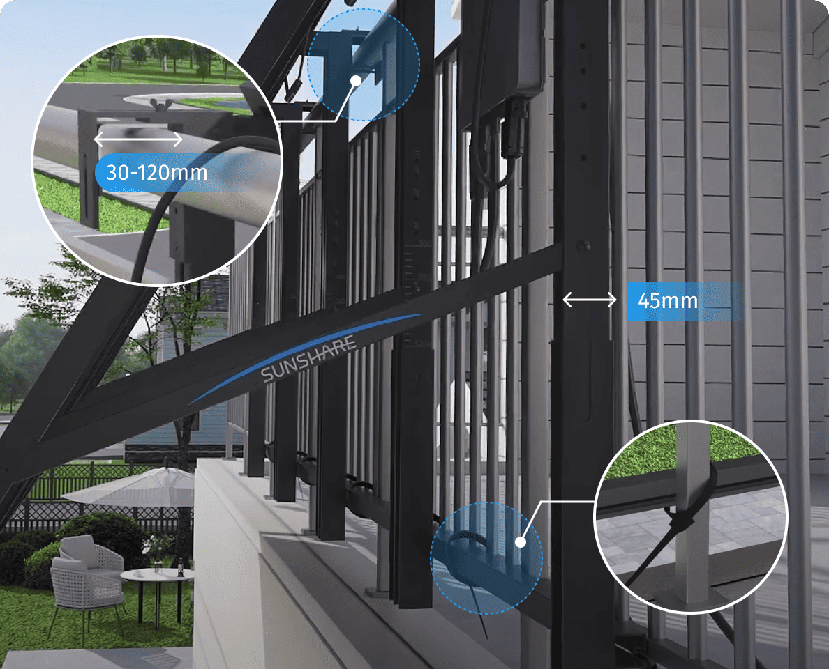 - Neigungswinkel von 10 ° bis 30 ° verstellbar, um eine optimale Ausrichtung und maximale Solarerträge zu gewährleisten.