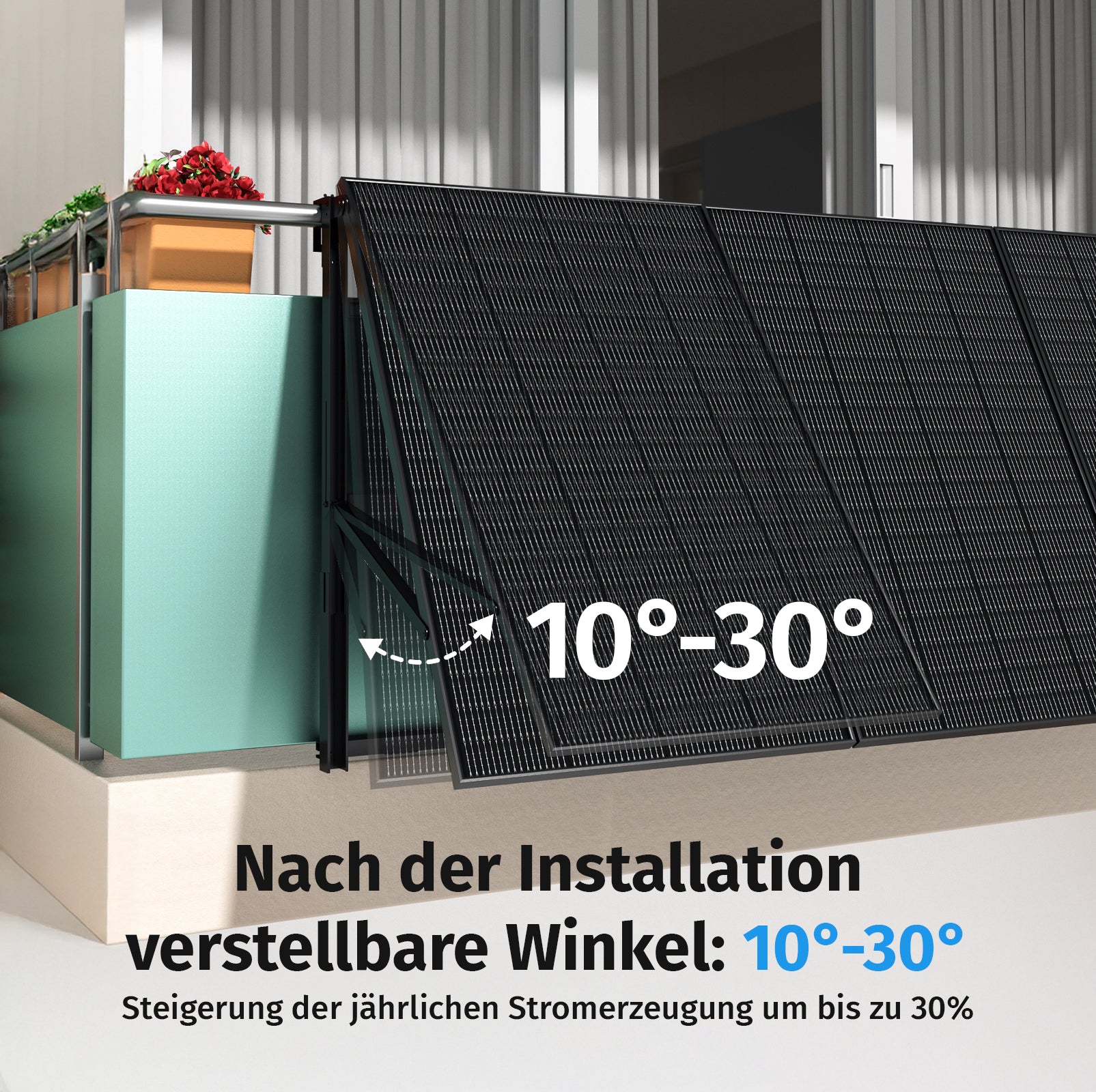 Winkel einstellbar von 10°/20°/25°/30° zur Steigerung der Stromerzeugung