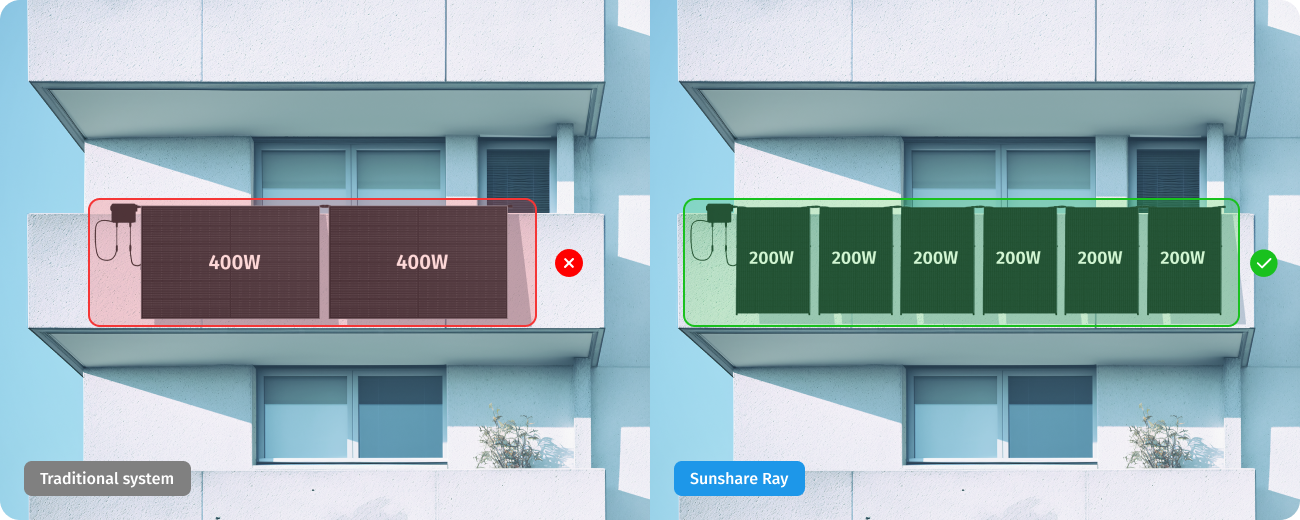 Die Solarpanels lassen sich flexibel auf Geländer, Boden oder Wand platzieren – so wie es am besten zur Sonne passt. Vielseitig, unkompliziert und kosteneffizient. Ideal, um dein Zuhause schnell und einfach nachhaltiger zu machen.